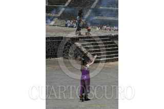TEOTIHUACAN, EDOMEX.- 04JUNIO2007.- La campeona Mundial de alterofilia Soraya Jimenez al finalizar la ceremonia del encendido de fuego nuevo para los Juegos Panamericanos Río 2007, realizado en la Calzada de los Muertos en Teotihuacan. FOTO: SAÚL LÓPEZ/CUARTOSCURO.COM