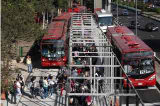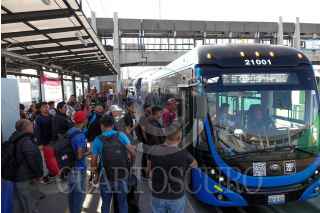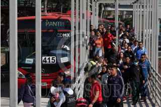 CIUDAD DE MÉXICO, 18DICIEMBRE2023.- Usuarios utilizaron el transporte alterno del Metrobús que va de la estación Velódromo hacia Pantitlán de la Línea 9 del metro y viceversa debido a que se mantendrá cerrada temporalmente por los trabajos de renivelación de vías de las estaciones Ciudad Deportiva, Puebla y Pantitlán. FOTO: GRACIELA LÓPEZ /CUARTOSCURO.COM