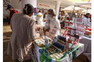 TOLUCA, ESTADO DE MÉXICO, 18DICIEMBRE2023.- Todos los lunes se instala el Mercado Verde en la Concha Acústica en Toluca en donde se dan cita productores y emprendedores de este municipio que buscan traer alimentos frescos y libres de químicos e insecticidas para consumo de los toluqueños, y como una forma de preservar nuestro entorno y medio ambiente. FOTO: CRISANTA ESPINOSA AGUILAR /CUARTOSCURO.COM