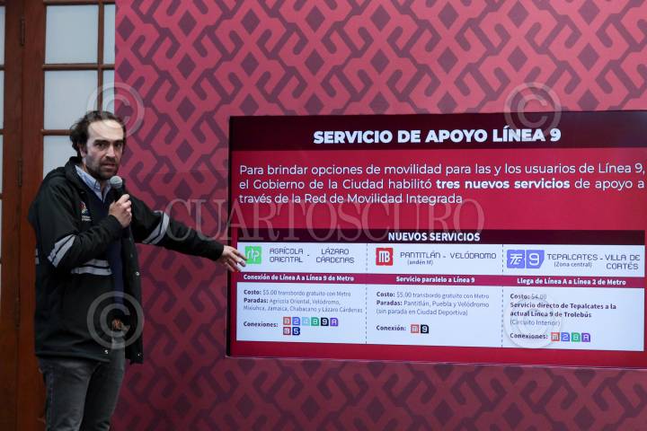 CIUDAD DE MÉXICO, 18DICIEMBRE2023.- Andrés Lajous, secretario de Movilidad, explica el servicio de transporte público que apoyará a los pasajeros durante el cierre de estaciones Pantitlán, Puebla y Ciudad Deportiva de la Línea 9.. FOTO: GOBIERNO DE LA CIUDAD DE MÉXICO/CUARTOSCURO.COM