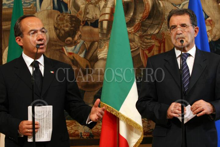 ROMA, ITALIA., 4JUNIO2007.-El presidente Felipe Calderón saluda al presidente del senado Franco Marinien en el Palacio Giustiniani. FOTO: ALFREDO GUERRERO/CUARTOSCURO.COM