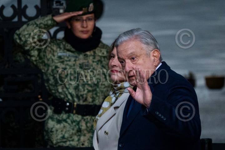 CIUDAD DE MÉXICO, 19DICIEMBRE2023.- Beatriz Gutiérrez Müller, investigadora y primera dama, arriba con el presidente Andrés Manuel López Obrador a la ceremonia de entrega del Premio Nacional del Deporte 2023 y Estímulo a las Delegaciones Mexicanas que participaron en los Juegos Panamericanos y Parapanamericanos 2023. FOTO: GALO CAÑAS/CUARTOSCURO.COM