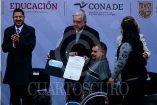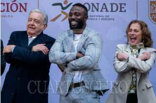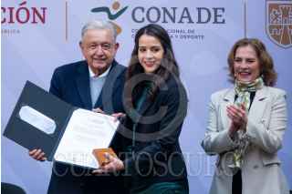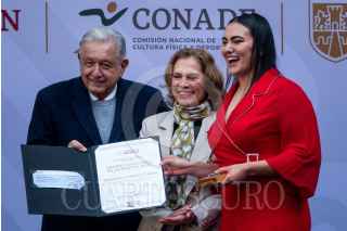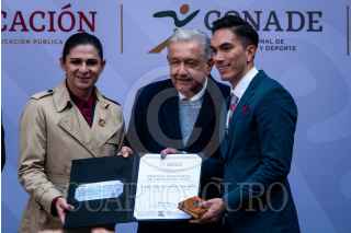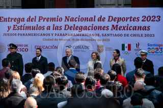 CIUDAD DE MÉXICO, 19DICIEMBRE2023.- Andrés Manuel López Obrador, presidente de México, hizo entrega del Premio Nacional del Deporte 2023 a la representación de la selección mexicana de Beisbol: Benjamin Gil, manager de la selección; Luis Urías; Randy Arozarena González; José Urquidy y Giovanni Gallegos, durante la ceremonia de entrega del Premio Nacional del Deporte 2023 y Estímulo a las Delegaciones Mexicanas que participaron en los Juegos Panamericanos y Parapanamericanos 2023. FOTO: GALO CAÑAS/CUARTOSCURO.COM