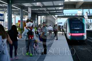 CANCÚN, QUINTANA ROO, 19DICIEMBRE2023.- La estación de Cancún del Tren Maya aún luce con detalles en su construcción, aunque desde el viernes fue abierta al público por el Presidente de México. El Tren Maya es un proyecto de infraestructura de gran envergadura que busca impulsar el desarrollo turístico y económico de la Península de Yucatán. El tren conectará las ciudades de Palenque, Chiapas, Cancún, y Quintana Roo. FOTO: ELIZABETH RUIZ/CUARTOSCURO.COM