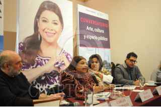 CIUDAD DE MÉXICO, 19DICIEMBRE2023. - Clara Brugada, precandidata única de Morena a la jefatura de gobierno, participó en el conversatorio :Arte, Cultura y Espacio Público. FOTO: DANIEL AUGUSTO /CUARTOSCURO.COM