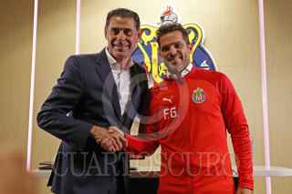 ZAPOPAN, JALISCO, 20DICIEMBRE2023.- Esta tarde en las instalaciones del estadio Akron, Fernando Hierro, Director Deportivo del Club Guadalajara, presento al argentino Fernando Gago, como nuevo Director Técnico del equipo de chivas, esto de cara al Torneo Clausura 2024 y la Copa de Campeones de Concacaf. FOTO: FERNANDO CARRANZA GARCIA / CUARTOSCURO.COM