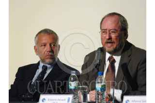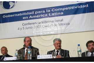 MÉXICO, D.F. 05JUNIO2007.- Conferencia internacional de la Organización de las Naciones Unidas en la que se trató el tema Gobernabilidad para la competitividad en América Latina. En la imagen Luis Lurcovich de la Región Lazio, Italia y Roberto Newell del Instituto Mexicano para la competitividad, A.C. FOTO: PATRICIA MORALES/CUARTOSCURO.COM