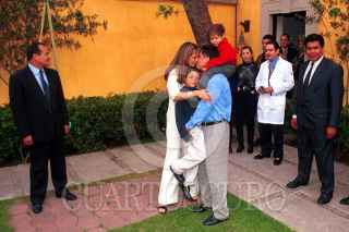 Mario Rodriguez Bezares junto a su familia, platica con reporteros después de salir del Reclusori Oriente. FOTO: Christian Palma/CUARTOSCURO.COM