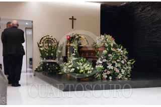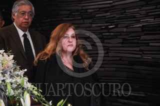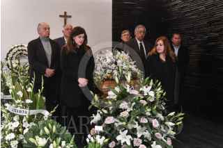 CIUDAD DE MÉXICO, 21DICIEMBRE2023.- Cecilia y Laura Pacheco, hijas de Cristina Pacheco, periodista y escritora, forman una guardia de honor a su madre quién falleció hoy a los 82 años. Estuvieron presentes: Enrique Krauze, historiador y ensayista; Héctor de Mauleón, escritor y periodista, y Antonio Lazcano, biólogo y científico mexicano. FOTO: MARIO JASSO/CUARTOSCURO.COM