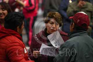 TOLUCA, ESTADO DE MÉXICO, 22DICIEMBRE2023.- Delfina Gómez Álvarez, Gobernadora del Estado de México encabezó la Segunda Audiencia Ciudadana en Palacio de Gobierno, a unos días de concluir el año escuchó las problemáticas de la población mexiquense. FOTO: CRISANTA ESPINOSA AGUILAR /CUARTOSCURO.COM