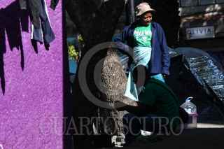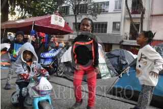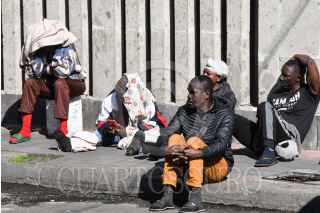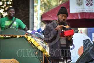 CIUDAD DE MÉXICO, 23DICIEMBRE2023.- En vísperas de las fiestas decembrinas decenas de migrantes, la mayoría haitianos permanecen en la Plaza Giordano Bruno "La pequeña Haití” de la colonia Juárez, en las cercanías de la Comisión Mexicana de Ayuda a Refugiados (COMAR). En la imagen, cuatro migrantes permanecen en una zona para tomar el sol. FOTO: MARIO JASSO/CUARTOSCURO.COM