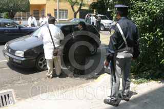 MÉXICO D.F. 05JUNIO2007.-El auto que presuntamente fue utilizado en la balacera de la agencia funeraria de Felix Cuevas donde murieron dos personas, fue encontrado hoy por la policía en las calles Gabriel Mancera y Tlacoquemecatl en la colonia del Valle Sur. FOTO: PEDRO MARRUFO/CUARTOSUCRO.COM