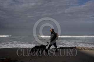 TIJUANA, BAJA CALIFORNIA, 24DICIEMBRE2023.- Imágenes del malecón de Playas de Tijuana durante una mañana fría y nublada, lugar donde gran cantidad de tijuaneses aprovechar la tranquilidad del lugar para acudir a caminar, a pasear a sus perros y para hacer ejercicio. De acuerdo con el Sistema Metereológico Nacional, se esperan bajas temperaturas para el Noroeste del país para los próximos días. FOTO: OMAR MARTÍNEZ/ CUARTOSCURO.COM
