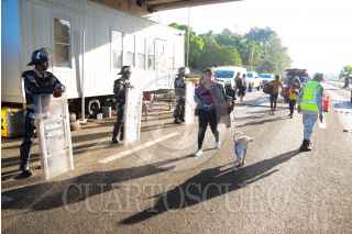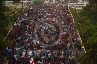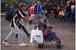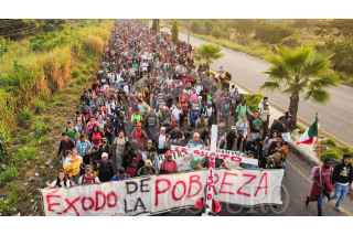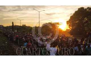TAPACHULA, CHIAPAS, 24DICIEMBRE2023.- Alrededor de ocho mil personas de diferentes nacionalidades rezaron antes de avanzar en una nueva caravana migrante con la ilusión de llegar a los Estados Unido. Al frente unos cargaban una cruz de Madera, con una manta que decía: “el éxodo de la pobreza". FOTO: DAMIÁN SÁNCHEZ/CUARTOSCURO.COM