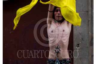 CIUDAD DE MÉXICO, 24DICIEMBRE2023.- Un bailarín de danza árabe da una presentación callejera en la zona centro durante el día de Nochebuena. FOTO: GALO CAÑAS/CUARTOSCURO.COM