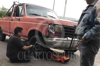 CIUDAD DE MÉXICO, 25DICIEMBRE2023.- Trabajador de una vulcanizadora cambia una llanta a un cliente en la mañana de navidad, siendo uno de los pocos negocios abiertos. FOTO: EDGAR NEGRETE LIRA/CUARTOSCURO.COM