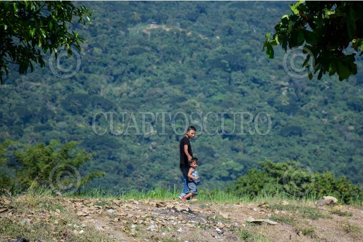 HUIXTLA, CHIAPAS, 25DICIEMBRE2023.- Migrantes que integran una nueva caravana caminaron un aproximado de 30 kilometros de la comunidad Álvaro Obregón de Tapachula al Municipio de Huixtla. Los caminantes se encuentran dispersos en la carretera costera, para descansar en una cancha de basquetball para y mañana en la madrugada seguir su camino. FOTO: DAMIÁN SÁNCHEZ/CUARTOSCURO.COM
