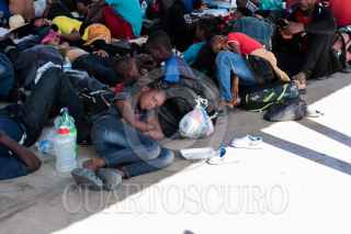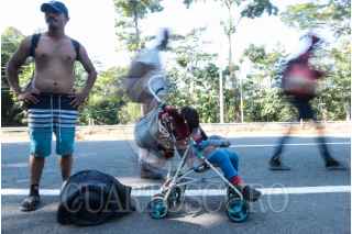HUIXTLA, CHIAPAS, 25DICIEMBRE2023.- Migrantes que integran una nueva caravana caminaron un aproximado de 30 kilometros de la comunidad Álvaro Obregón de Tapachula al Municipio de Huixtla. Los caminantes se encuentran dispersos en la carretera costera, para descansar en una cancha de basquetball para y mañana en la madrugada seguir su camino. FOTO: DAMIÁN SÁNCHEZ/CUARTOSCURO.COM