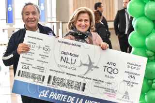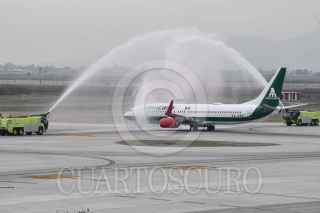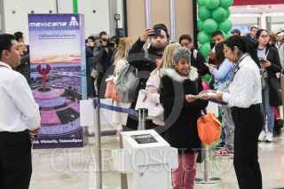 ZUMPANGO, ESTADO DE MÉXICO, 26DICIEMBRE2023.- Mexicana "Aerolínea del Pueblo de México" reanudó operaciones después de 13 años sin actividad. El vuelo inaugural partió del el Aeropuerto Internacional Felipe Ángeles (AIFA) al Aeropuerto Internacional de Tulum (ATI) de Quintana Roo. FOTO: MARIO JASSO/CUARTOSCURO.COM