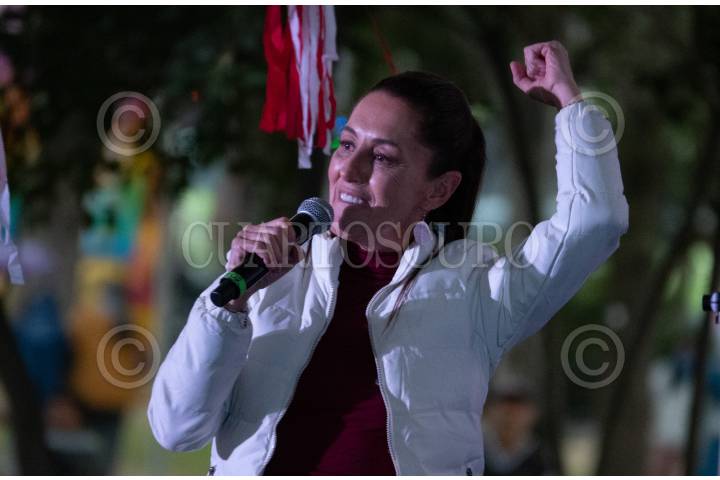 CIUDAD DE MÉXICO, 26DICIEMBRE2023.- Claudia Sheinbaum, precandidata de Morena a la Presidencia, durante su participación en el mitin de Morena organizado en el parque El Mestizaje. FOTO: DENISSE HERNÁNDEZ/CUARTOSCURO.COM