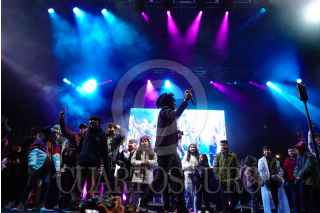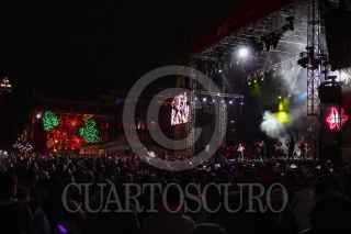 CIUDAD DE MÉXICO, 26DICIEMBRE2023.- La banda de SKA Salón Victoria, se presentó la noche de este martes como parte de las celebraciones de la Verbena Navideña 2023 en el Zócalo capitalino. FOTOS: ROGELIO MORALES /CUARTOSCURO.COM