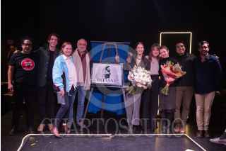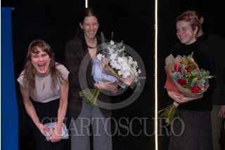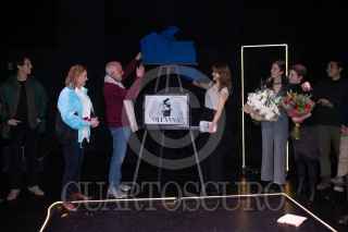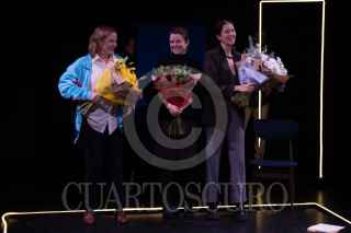 CIUDAD DE MÉXICO, 26DICIEMBRE2023. Nailea Norvind, Ana Mancera y Naian González Norvind durante la develación de placa de la obra de teatro "Oleanna" por su fin de temporada, en el Foro Lucerna. FOTO: EDGAR NEGRETE LIRA/CUARTOSCURO.COM