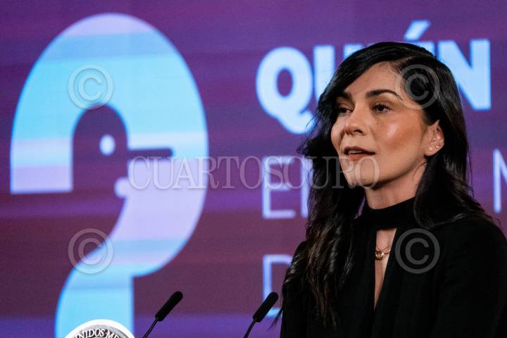 CIUDAD DE MÉXICO, 27DICIEMBRE2023.- Ana Elizabeth García Vilchis, titular de la sección “Quién es quién en las mentiras de la semana", durante la conferencia matutina desde Palacio Nacional. FOTO: GALO CAÑAS/CUARTOSCURO.COM