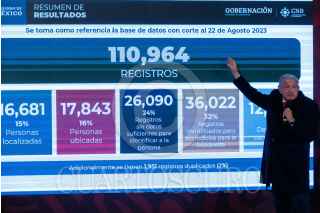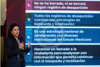 CIUDAD DE MÉXICO, 27DICIEMBRE2023.- Teresa Guadalupe Reyes Sahagún, comisionada Nacional de Búsqueda, durante la conferencia matutina desde Palacio Nacional en donde presentó detalles sobre la Estrategia Nacional de Búsqueda Generalizada. FOTO: GALO CAÑAS/CUARTOSCURO.COM