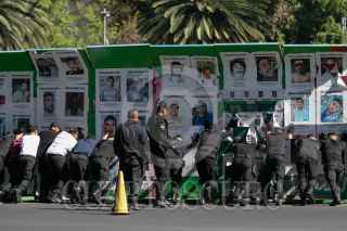 CIUDAD DE MÉXICO, 28DICIEMBRE2023.- Policías de la Secretaría de Seguridad Ciudadana desoldaron las vallas de la llamada Glorieta de las y los Desaparecidos, en donde también se alberga el Ahuehuete, esto como parte del operativo que se esta llevando a cabo por el festejo de año nuevo en Paseo de la Reforma. FOTO: MOISÉS PABLOS/CUARTOSCURO.COM