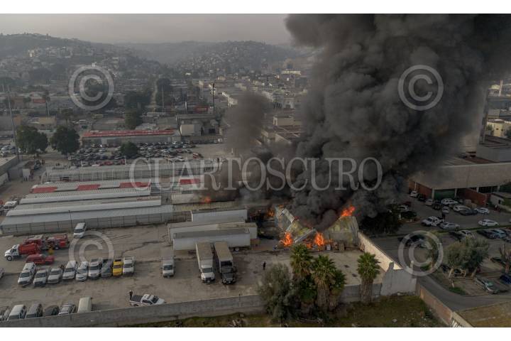 TIJUANA, BAJA CALIFORNIA, 29DICIEMBRE2023.- Esta mañana ocurrió un fuerte incendio a un costado de la Clínica 20 del IMSS, en una bodega de la Punto Plaza, debido a esto tanto pacientes como trabajadores fueron evacuados por su seguridad. Trabajadores de la clínica reaccionaron de inmediato ante la amenaza de que el incendio se aproximará a sus instalaciones, evacuando a pacientes de urgencias, empleados y hasta pacientes que tomaban sus quimioterapia. Una vez se les informó que el incendio fue controlado, ingresaron primeramente los pacientes de urgencias y al último los empleados de la clínica. FOTO: OMAR MARTÍNEZ/ CUARTOSCURO.COM