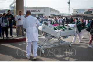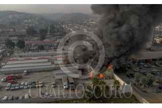 TIJUANA, BAJA CALIFORNIA, 29DICIEMBRE2023.- Esta mañana ocurrió un fuerte incendio a un costado de la Clínica 20 del IMSS, en una bodega de la Punto Plaza, debido a esto tanto pacientes como trabajadores fueron evacuados por su seguridad. Trabajadores de la clínica reaccionaron de inmediato ante la amenaza de que el incendio se aproximará a sus instalaciones, evacuando a pacientes de urgencias, empleados y hasta pacientes que tomaban sus quimioterapia. Una vez se les informó que el incendio fue controlado, ingresaron primeramente los pacientes de urgencias y al último los empleados de la clínica. FOTO: OMAR MARTÍNEZ/ CUARTOSCURO.COM