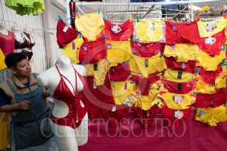 CIUDAD DE MÉXICO, 29DICIEMBRE2023.- En vísperas de Año nuevo, la venta de lencería amarilla y roja en el Mercado Jamaica predomina para el amuleto del dinero y el amor. FOTO: GRACIELA LÓPEZ /CUARTOSCURO.COM