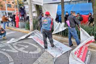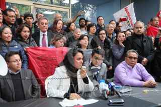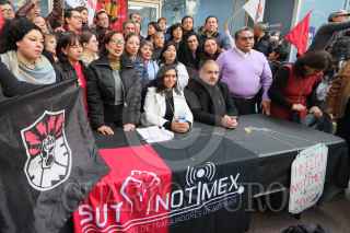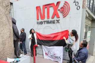 CIUDAD DE MÉXICO, 29DICIEMBRE2023.- Integrantes del Sutnotinex, encabezados por su líder Adriana Urrea, ofrecieron una conferencia de prensa para dará conocer que levantan la huelga, que según señalan duro más de dos años, luego de que la convocarán tras despidos masivos que fueron encabezados por la directora Sanjuana Martínez, y que ellos consideraron como despidos injustificados. Informaron que levantaron las banderas rojinegras del edificio que albergo Notimex y la cual fue desaparecida por el gobierno federal, ya que aceptaron el plan de liquidaciones propuesto por la Segob. FOTO: ROGELIO MORALES/CUARTOSCURO.COM