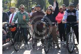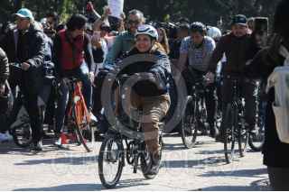 CIUDAD DE MÉXICO, 30DICIEMBRE2023.-Clara Brugada, precandidata única de Morena a la jefatura de gobierno, encabezó esta mañana, una rodada ciclista en el Bosque de Chapultepec. FOTO: DANIEL AUGUSTO /CUARTOSCURO.COM
