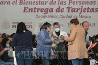 CIUUDAD DE MÉXICO, 30DICIEMBRE2023.- Módulo para que adultos mayores tramitan sus tarjetas del bienestar en el Monumento a la Revolución. FOTO: MOISÉS PABLO/CUARTOSCURO.COM