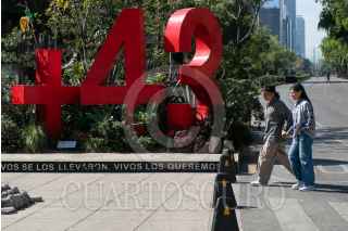 CIUDAD DE MÉXICO, 31DICIEMBRE2023.- Monumento a las 43 normalistas desaparecidos desde el 2016 en Iguala, Guerrero, ubicado en avenida Reforma. El Gobierno de Andrés Manuel López Obrador anunció que abrirá el expediente del 'caso Ayotzinapa' durante dos meses a los padres de los 43 jóvenes. FOTO: MOISÉS PABLO/CUARTOSCURO.COM