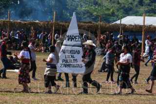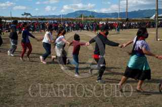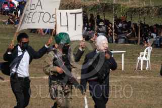 DOLORES HIDALGO, CHIAPAS, 31DICIEMBRE2023.- En el marco del treinta aniversario del levantamiento armado del Ejército Zapatista de Liberación Nacional, representantes de los diferentes caracoles del territorio chiapaneco realizaron diferentes obras de teatro para explicar a los asistentes la historia de su organización y el contexto político y económico de Chiapas y del resto del país. FOTO: ISABEL MATEOS/CUARTOSCURO.COM