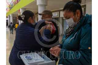 TOLUCA, ESTADO DE MÉXICO, 02ENERO2024.- Personal del IMSS instaló un puesto de vacunación en la Concha Acústica, en los Portales de Toluca en donde estarán aplicando las vacunas contra Influenza y COVID 19, el biológico para esta última es Abdala, aplicaran las vacunas en un horario de 9:30 a 14:00 hrs hasta el viernes 5 de enero, hacen una invitación a la población para acudir a aplicarse sus vacunas; serán aproximadamente 300 dosis diarias las que se apliquen. FOTO: CRISANTA ESPINOSA AGUILAR /CUARTOSCURO.COM