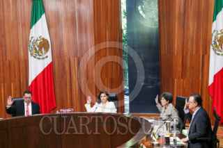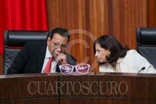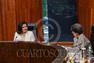 CIUDAD DE MÉXICO, 03ENERO2024.- Mónica Soto, magistrada presidenta del TEPJF, conversa con la magistrada Janine Otálora, durante la sesión. FOTO: MOISÉS PABLO/CUARTOSCURO.COM