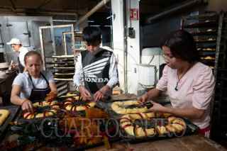CIUDAD DE MÉXICO, 03ENERO2024.- En el marco de la celebración de la llega de los Reyes Magos, panaderos y ayudantes elaboraron la tradicional rosca en la Panadería Tajona. Durante estos días previos al 6 e enero, preparan alrededor de 100 roscas de cada tamaño por día. FOTO: GRACIELA LÓPEZ /CUARTOSCURO.COM