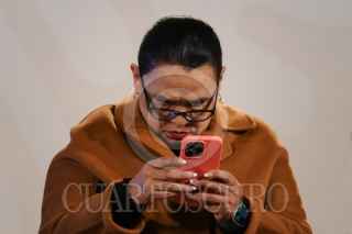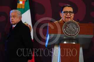 CIUDAD DE MÉXICO, 05ENERO2024.- Rosa Icela Rodríguez, secretaria de Seguridad y Protección Ciudadana, revisa su celular durante la mañanera para informar sobre el caso de los 32 migrantes secuestrados en Tamaulipas. FOTO: DENISSE HERNÁNDEZ/CUARTOSCURO.COM