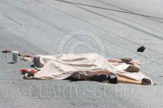 TLALNEPANTLA, ESTADO DE MÉXICO, 06ENERO2024.- Un hombre de la tercera edad se arrojó al paso de un tráiler, el cual no pudo evitar arrollarlo, esto en la lateral de la avenida Vallejo y calle Isla de la Concepción, en la colonia Prados Vallejo. FOTO: ROGELIO MORALES/CUARTOSCURO/CUARTOSCURO.COM