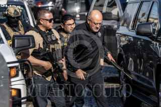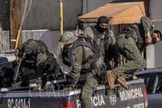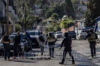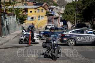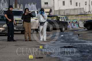 TIJUANA, BAJA CALIFORNIA, 06ENERO2024.- Minutos antes del medio día de este sábado, un agente de la policía municipal de la unidad de inteligencia, fue atacado por disparos de arma de fuego. Según información extraoficial, el policía estaba abordo de una camioneta Tacoma color gris, acompañado de una agente cuando fueron envestidos por unos sujetos que comenzaron a dispararle. Los responsables dispararon desde un vehículo tipo Kia, Sorento, mismo en el que trataron de huir en dirección ascendente sobre la avenida Jhonson, sin embargo uno de los responsables perdió la vida. El oficial de la policía municipal, fue trasladado abordo de la misma Tacoma hacia las instalaciones del Isstecali en el Mirador en estado crítico. Una cámara de vigilancia logró captar el exacto del ataque, donde se puede observar a la agente disparando hacia los agresores en varias ocasiones. Una gran cantidad de casquillos percutidos quedaron en la escena donde se registraron los hechos en la avenida Jhonson de la colonia Cañón Jhonson de acuerdo a los señalamientos de Servicios Periciales. La imagen muestra la llegada del Secretario de Seguridad Pública de Tijuana, José Fernando Sánchez al lugar del atentado. FOTO: OMAR MARTÍNEZ /CUARTOSCURO.COM