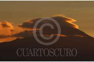 CUERNAVACA, MORELOS, 07ENERO2024.- Esta mañana se pueden observar nubes lenticulares alrededor del cráter del volcán Popocatépetl. Este tipo de nubes se caracterizan por tener una forma de disco o lente convexa y son comúnmente observadas en áreas montañosas, donde el aire fluye sobre las cimas de las montañas y crea ondas atmosféricas. FOTO: MARGARITO PÉREZ RETANA/CUARTOSCURO.COM