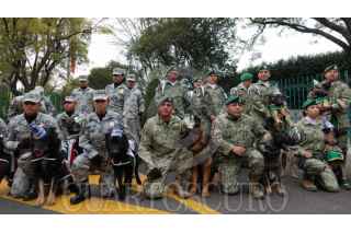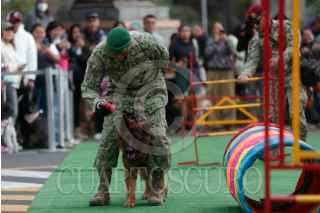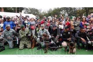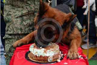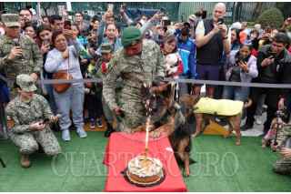 CIUDAD DE MÉXICO, 07ENERO2024.- Se llevó a cabo la celebración del Primer Cumpleaños del Soldado Arkadas en la que lo acompañaron binomios caninos y el festejo con un pastel; durante el evento se realizaron certificado de aprobación de alta canina y fotografías con el cumpleañero. El acto se realizó en el monumento a Protejo en las instalaciones de Campo Militar Marte. FOTO: GRACIELA LÓPEZ/ CUARTOSCURO.COM