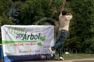 CIUDAD DE MÉXICO, 07ENERO2024.- Gran convocatoria esta teniendo la campaña "Árbol por Árbol 2024" en el Parque de los Venados, decenas de capitalinos acuden con sus árboles de navidad tras concluir el período navideño, a cambio obtienen un árbol para trasplantar y así poder contribuir al medio ambiente. Los árboles recolectados serán utilizados para realizar composta biodegradable. FOTO: MOISÉS PABLO/CUARTOSCURO.COM