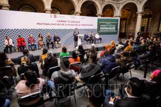 CIUDAD DE MÉXICO, 08ENERO2024.- El jefe del Gobierno de la Ciudad, Martí Batres Guadarrama; presento el proyecto "Camina Tú Zócalo", que es la peatonización de la Plaza de la Constitutción. LO acompañaron miembros de su gabinete y se llevo acabo este evento en el Palacio del Ayuntamiento. FOTO: GOBIERNO DE LA CIUDAD/CUARTOSCURO.COM