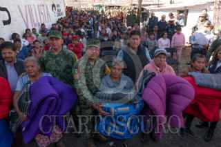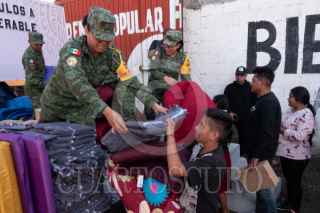 CIUDAD DE MÉXICO, 08ENERO2024.- Habitantes villistas del Predio Centauro del Norte recibieron cobijas, colchonetas y cajas con despensas y zapatos por parte de José Antonio Jiménez Islas, encargado del despacho de la alcaldía Iztapalapa, autoridades de la Secretaria de Seguridad Ciudadana, SEDENA y Guardia Nacional. El acto se realizó en la colonia El Triángulo, alcaldía Iztapalapa. FOTO: GRACIELA LÓPEZ /CUARTOSCURO.COM