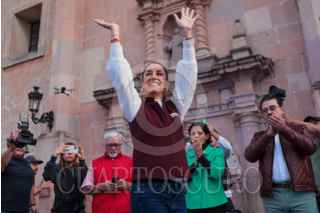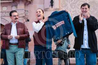 LAGOS DE MORENO, JALISCO, 09ENERO2024.- Claudia Sheinbaum, Precandidata a la Presidencia de la República de morena se reunió con simpatizantes en la.plaza principal de esta ciudad. FOTO: PRENSA CLAUDIA SHEINBAUM/CUARTOSCURO.COM