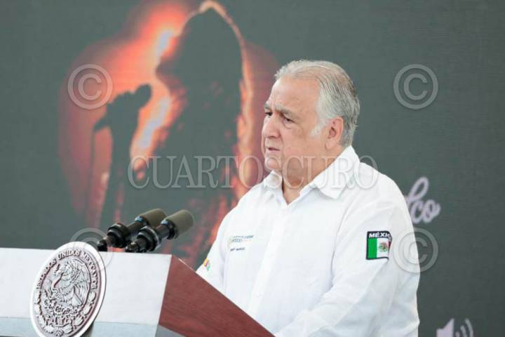 ACAPULCO, GUERRERO, 10ENERO2024.- Miguel Torruco, secretario de Turismo, durante la presentación del Plan General de Reconstrucción y Apoyo a la Población en Acapulco y Coyuca de Benítez por el paso del huracán Otis, en la mañanera que en esta ocasión se realizó en la zona naval de este puerto. FOTO: PRESIDENCIA/CUARTOSCURO.COM